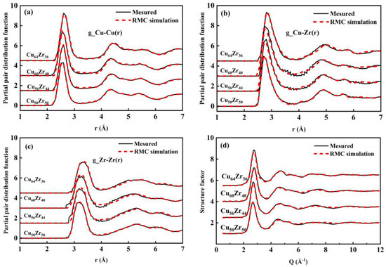 - Blodgett, M.E.; Kelton, K.F. Estimated partial pair correlation functions in Cu–Zr liquids. J. Non-Cryst. Solids 2015, 412, 66–71. [Google Scholar] [CrossRef]