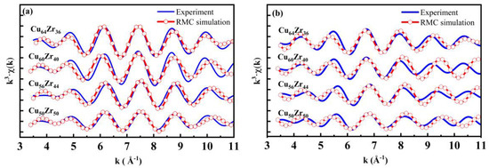- Lu, B.F.; Kong, L.T.; Laws, K.J.; Xu, W.Q.; Jiang, Z.; Huang, Y.Y.; Ferry, M.; Li, J.F.; Zhou, Y.H. EXAFS and molecular dynamics simulation studies of Cu-Zr metallic glass: Short-to-medium range order and glass forming ability. Mater. Charact. 2018, 141, 41–48. [Google Scholar] [CrossRef]