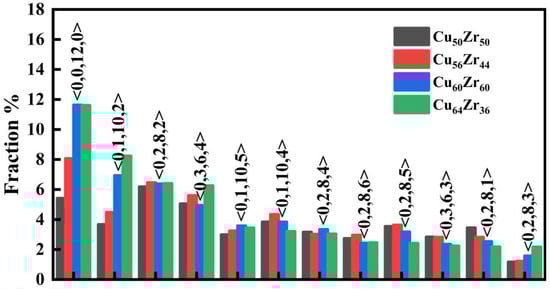 - In RMC models, <0,0,12,0> and <0,1,10,2> dominates in MGs, and becomes more abundant with increasing Cu content, which makes the structures of MGs more stable.