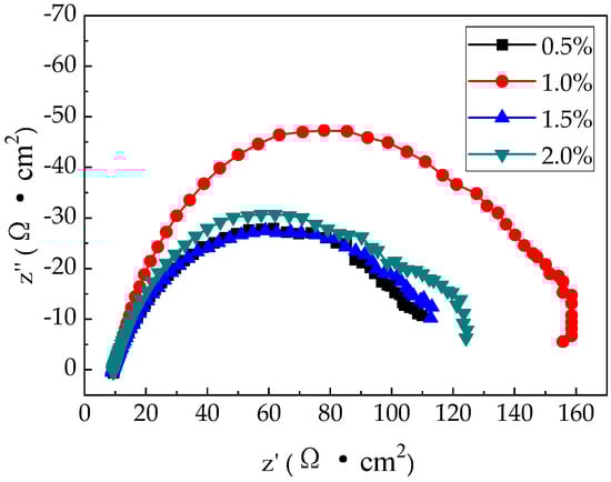 Figure 6 displays the EIS diagram measured on 20# steel in oil-water flow under different sand concentrations—0.5%, 1.0%, 1.5% and 2.0% at room temperature and a velocity of 2 m/s.