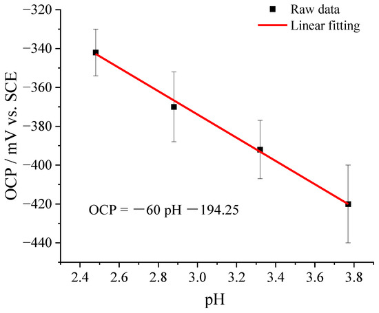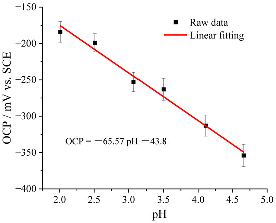 - In sulfuric acid and TCC coating solutions, the open circuit potential of the microelectrode changes linearly with the pH value of the solution. The tungsten microelectrode had a sensitivity of –60 mV/pH. The characteristics of the tungsten microelectrode was used to characterize the pH evolution of the metal–solution interface.
