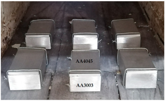 The two-layer Al composite plates (pack) prepared for hot roll-bonding.