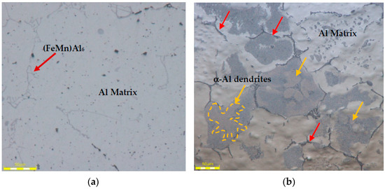 - Liu, Y.; Huang, G.; Sun, Y.; Zhang, L.; Huang, Z.; Wang, J.; Liu, C. Effect of Mn and Fe on the Formation of Fe- and Mn-Rich Intermetallics in Al-5Mg-Mn Alloys Solidified Under Near-Rapid Cooling. Materials 2016, 9, 88. [Google Scholar] [CrossRef] [PubMed]