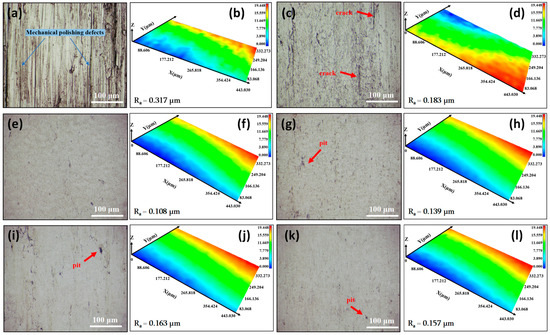 3.1. Surface Morphology of Ti6Al4V Alloy in Different Processing States