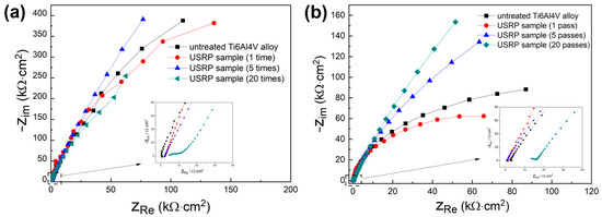 - Ultrasonic rolling processing can also endow the Ti6Al4V alloy with a better passive performance and improve its corrosion resistance to a certain extent, especially in an acidic solution system. Relatively speaking, the five-passes-processed samples performed better, which has a higher charge transfer resistance (Rct) value.