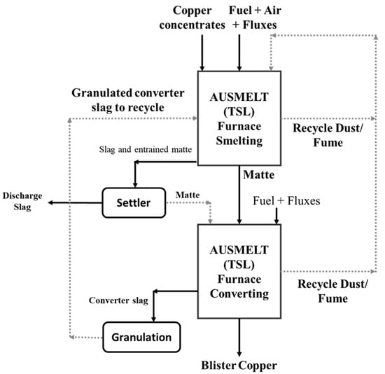 Primary copper AUSMELT flowsheet (redrawn with permission) [20].