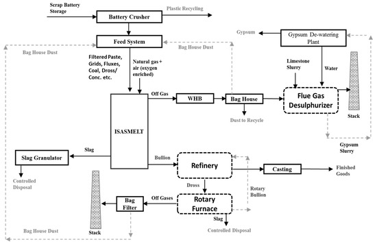 - Ramus, K.; Hawkins, P. Lead/acid battery recycling and the new Isasmelt process. J. Power Sources 1993, 42, 299–313. [Google Scholar] [CrossRef]