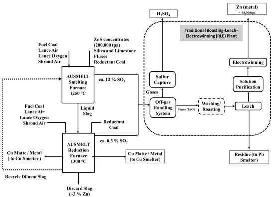- Hoang, J.; Reuter, M.A.; Matusewicz, R.; Hughes, S.; Piret, N. Top Submerged Lance direct zinc smelting. Miner. Eng. 2009, 22, 742–751. [Google Scholar] [CrossRef]