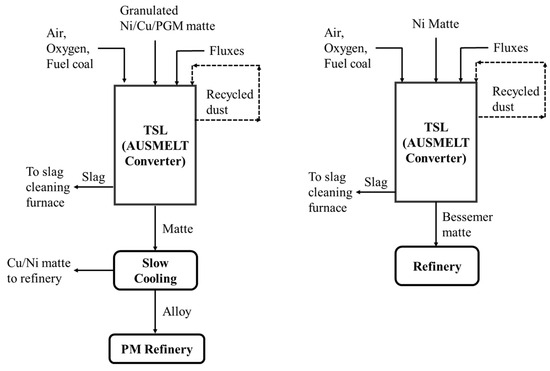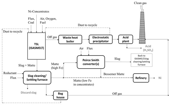- Warner, A.E.; Díaz, C.M.; Dalvi, A.D.; Mackey, P.J.; Tarasov, A.V.; Jones, R.T. JOM world nonferrous smelter survey Part IV: Nickel: Sulfide. JOM 2007, 59, 58–72. [Google Scholar] [CrossRef]