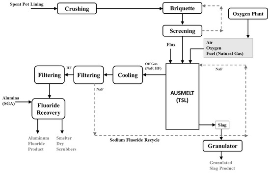 - Holywell, G.; Breault, R. An overview of useful methods to treat, recover, or recycle spent potlining. JOM 2013, 65, 1441–1451. [Google Scholar] [CrossRef]
