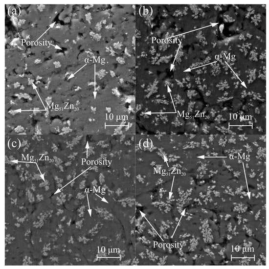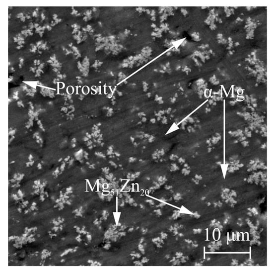 - Verissimo, N.C.; Brito, C.; Afonso, C.R.; Spinelli, J.E.; Cheung, N.; Garcia, A. Microstructure Characterization of a Directionally Solidified Mg-12wt.%Zn Alloy: Equiaxed Dendrites, Eutectic Mixture and Type/Morphology of Intermetallics. Mater. Chem. Phys. 2018, 204, 105–131. [Google Scholar] [CrossRef]