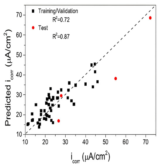 Correlation between predicted i_corr and observed i_corr. Adapted with permission from Ref. [21]. Copyright 2016, Elsevier.