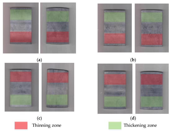 According to the target size of the specimens, the preset variable thickness rolling process was applied to carry out the experiment, and the experimental results are shown in Figure 7.