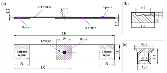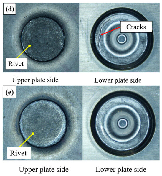 - Jia, Y.L.; Huang, Z.C.; Zhang, Y.C.; Zhang, F. Forming Quality and Fatigue Behavior of Self-Piercing Riveted Joints of DP590 and AA6061 Plates. Adv. Mater. Sci. Eng. 2021, 2021, 4381544. [Google Scholar] [CrossRef]