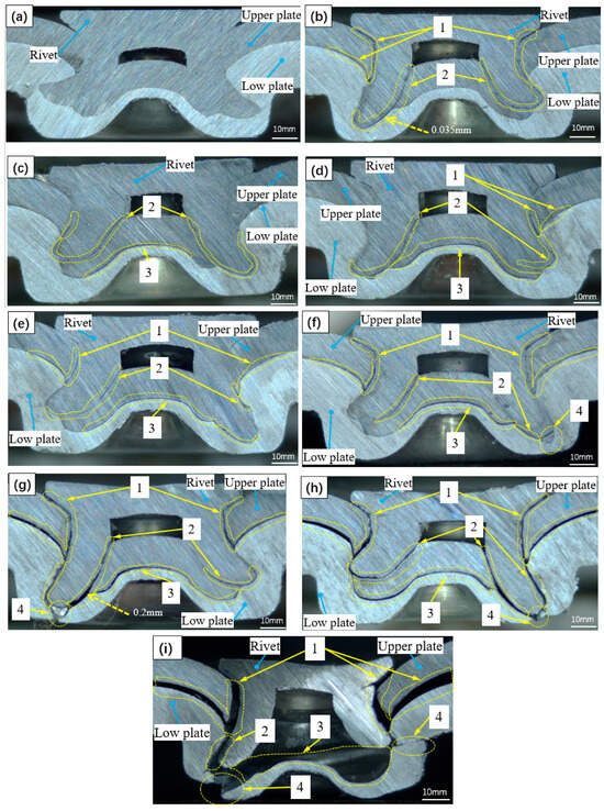 - Lou, M.; Li, Y.B.; Wang, Y.; Wang, B.; Lai, X.M. Influence of resistance heating on self-piercing riveted dissimilar joints of AA6061-T6 and galvanized DP590. J. Mater. Process. Technol. 2014, 214, 2119–2126. [Google Scholar] [CrossRef]