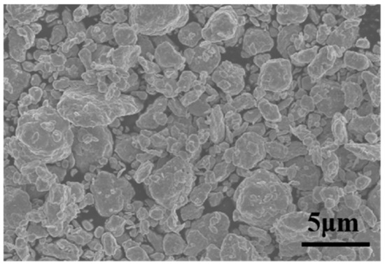 TZC molybdenum alloy was prepared using TiH1.9 powder, ZrH1.9 powder, Mo powder, and carbon nanotubes (CNTs), which are milled together with an omni-directional planetary ball mill for 20 h. The powder was then crushed using an agate bowl. Figure 1 shows the SEM image of the TZC powder after ball milling. It can be seen that most of the grains in the TZC powder are well refined, though some large-sized particles are still observed, perhaps originating from the powder agglomeration. Table 1 shows the weight percentage of each chemical component in the TZC powder and ODS-W used in this investigation.