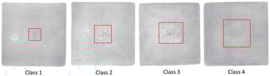 In this study, hot acid was used to etch the billets of rebar steels and bainitic rail steels to obtain the defect area. The Chinese standard YB/T4002-2013 [27] was used to determine the defect level of the billets. When rating the other sizes of billet, the ratio of the defect area and the billet area can be used as the standard of rating since the area and the number of pixels have the same proportional transformation relationship. Therefore, the ratio of the number of pixels contained in the shrink hole to the number of pixels contained in the billet was used as a rating parameter for the defect grade. In actual production, because of the use of a hot acid etching treatment, the segregation after corrosion is often masked by the pot region, which appears as a porous area in the image. On the other hand, the spot itself is caused by segregation, which is the reason we selected the porous region for grading.