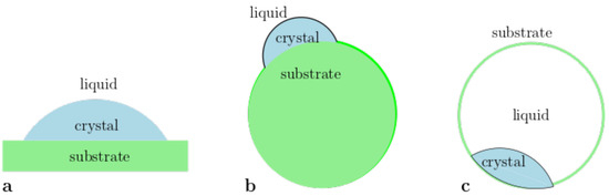 where and are the surface energies on the crystal–liquid and crystal–substrate interface, respectively, and
