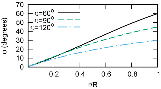 If we consider a negative angle (), Equation (36) yields