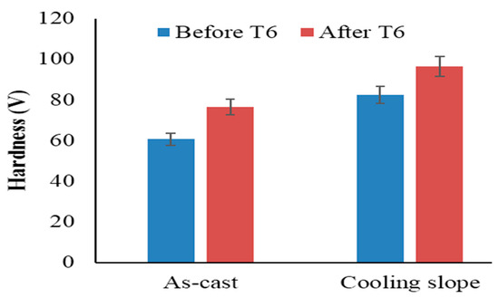 3.4. Evaluation of Cooling-Slope and Heat Treatment Process on Hardness of A356 Alloys