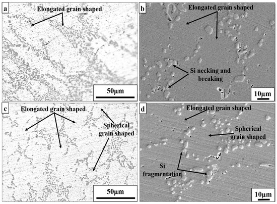 - Ogris, E.; Wahlen, A.; Lüchinger, H.; Uggowitzer, P.J. On the silicon spheroidization in Al-Si alloys. J. Light Met. 2002, 2, 263–269. [Google Scholar] [CrossRef]
