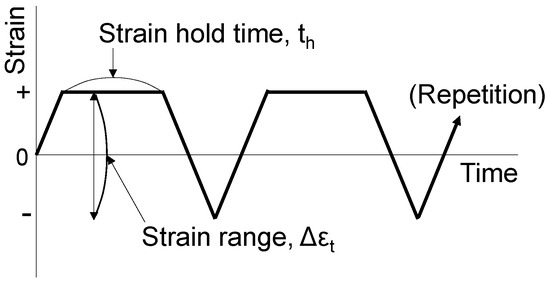 Creep–fatigue test results for Gr.91 steel at 600 °C [7]. permissioned from Japan Society of Materials Science in 2023.