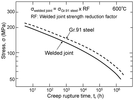 Fatigue life reduction factor of the Gr.91 steel welded joint [20].