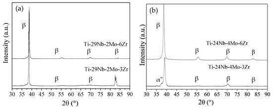 - Correa, D.R.N.; Vicente, F.B.; Araújo, R.O.; Lourenço, M.L.; Kuroda, P.A.B.; Buzalaf, M.A.R.; Grandini, C.R. Effect of the Substitutional Elements on the Microstructure of the Ti-15Mo-Zr and Ti-15Zr-Mo Systems Alloys. J. Mater. Res. Technol. 2015, 4, 180–185. [Google Scholar] [CrossRef]