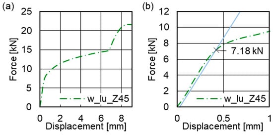 The bending test was carried out in a horizontal position, for which the clamping had to be tilted and the punch rotated by 90 degrees (see Figure 4a,b). The bending force was applied at a distance of five millimetres over the entire width of the lug with the help of the punch. Horizontal installation was also used for thread testing, as shown in Figure 4c. For this purpose, the punch insert was used and the fixture was moved so that the screw was centred below the punch. The test screws (M6, strength class 12.9) were first screwed in completely and then unscrewed by two turns. Markings were applied to the screw head for this purpose. The thread test was designed as a compression test.