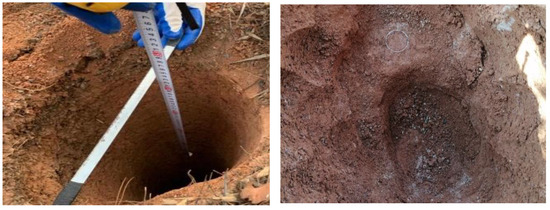 Table 3 shows the density of samples retrieved via the ring cutter method at different depths. As an index reflecting the development of mineral soil pores, porosity is also an important parameter of RE deposit pore structure. In the leaching process of ionic rare earth ore, the accurate measurement of porosity and void ratio is of good practical significance [36,37]. Using the parameters of gravity, density () and moisture content (ω) of the RE deposit sample, we obtained the porosity and void ratio (see Table 4). The vibrating screen method was adopted to screen the mineral soil at various depths. Sieves with different mesh numbers were stacked on a vibrating screen machine. 500 g rare earth samples at different depths were placed in the top screen. Upon vibrating the mineral deposits for 10–15 min, we weighed the quality of mineral soil on screens with different apertures. In the meantime, the percentages of each particle size range were calculated. Table 5 shows the results of the particle size distribution of the deposit samples at different depths.