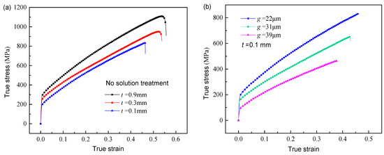 - The mechanical properties and hardening behavior of 316L stainless steel sheets are all influenced by the specimen thickness and grain size. With decreases in plate thickness and increases in grain size, the yield strength and tensile strength of 316L stainless steel sheets gradually decrease. The yield strength and tensile strength decreased by nearly half after 20 min of heat treatment, due to the grain size growth.