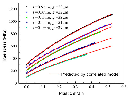 - Based on Armstrong model, the correlated hardening model of 316L stainless steel was established considering the specimen and grain size effects. The predicted strain–strain by the established correlated hardening model has good agreement with the experiment curves.