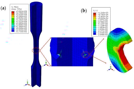 LC propagation was examined using the LEFM parameter, the SIF K. The model presented in Figure 7 calculated this value using the Abaqus-built XFEM. Table 5 contains a part of the values calculated for different crack lengths under a 425 MPa cyclic load. The experimental value of critical SIF was provided by Materialprüfungsanstalt, Universität Stuttgart [24].