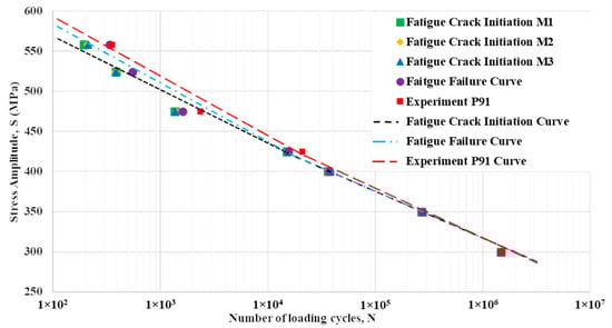 TMM helps to determine how many cycles are needed for cracks to start and grow in individual grains. The crack-initiation stress-number (S-N) of cycles curves estimate how many cycles a crack will last before it breaks. The material being investigated in this study, 9Cr-1Mo (P91), has a body-centered cubic crystal structure [26] and is commonly utilized when high temperatures are involved. The fatigue life curve was derived by assessing the number of cycles required for the initiation of short cracks across varying microstructures. An enhancement over previous studies is the incorporation of plasticity, better aligning the model’s characteristics with the real material properties. This adjustment is particularly relevant because it accounts for crack initiation, marking the onset of irreversible material deformation.