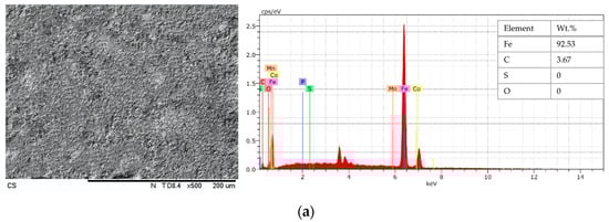 3.4. SEM Images and EDX Results: Case B