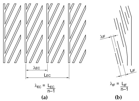 Despite expecting various microstructural features in the analyzed Al-Ni-Fe alloy, only the eutectic microstructure displayed a consistent pattern that enabled spacing measurements. The intercept method, as described by Gündüz et al. [25], was employed to measure the eutectic colony spacing (λEC) and the intermetallic fiber spacing (λIF), as shown in Figure 2.