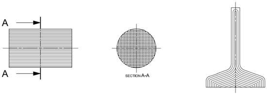 - Configuration A (Figure 1): simulated a forged component with its proper orientation because its fibers were arranged along the longitudinal direction of the specimen, that is, at 0° from the rolling direction;
