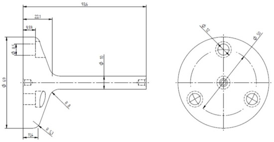 To finish the manufacturing process, samples were machined in a CNC lathe to ensure dimensional repeatability between the specimens, as illustrated in Figure 13. The machined specimens were then polished at the transition radius region of the flange with the stem so that the roughness did not interfere with the fatigue test results. Then, the specimens were drilled in the flange region for subsequent attachment to the fatigue test equipment, as illustrated in Figure 14. The tolerances applied for machined specimens were determined according to ISO 2768.