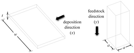 In the AFS-D process, a feedstock rod enters a rotating hollow shoulder (also known as the spindle) and undergoes plastic deformation due to fiction-induced elevated temperature at the spindle–substrate interface and material–substrate interface. Then, the softened material is deposited on the substrate or the previous deposited layer(s) following the pattern determined by G-code [2]. The continuity equation (conservation of mass) enforces a constraint between layer thickness, part dimensions, feedstock rate, and spindle transverse speed (Figure 2).