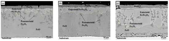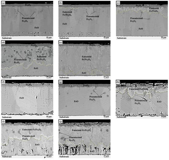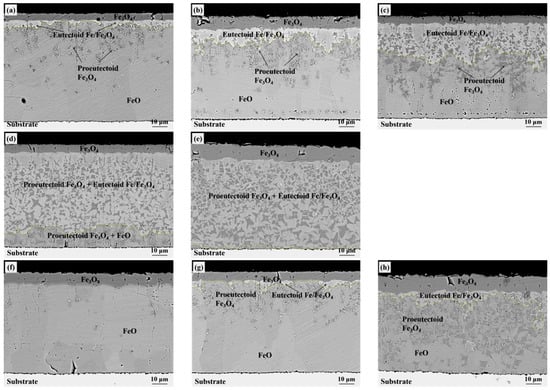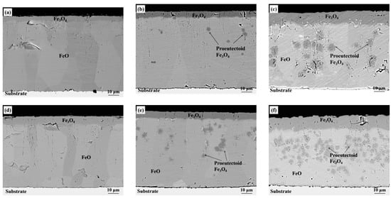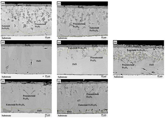 - Li, Z.F.; Cao, G.M.; Lin, F.; Wang, H.; Liu, Z.Y. Characterization of Oxide Scales Formed on Plain Carbon Steels in Dry and Wet Atmospheres and Their Eutectoid Transformation from FeO in Inert Atmosphere. Oxid. Met. 2018, 90, 337–354. [Google Scholar] [CrossRef]