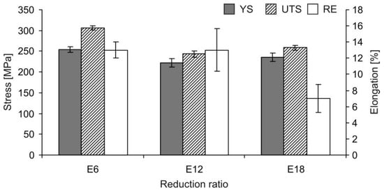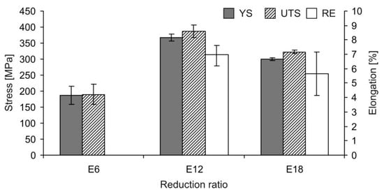 The most attractive balance of strength and ductility for all three alloys was achieved after rolling with the E12–E18 reductions.