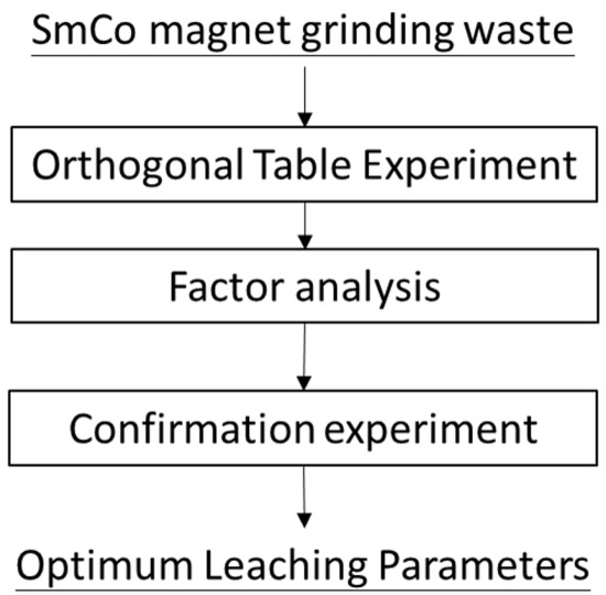 Firstly, the SmCo magnet wastes were dried in an oven at 70 °C for 7 days to obtain dry waste. Subsequently, the waste was sieved through a 100-mesh sieve to remove the magnets that accidentally fell during the process.
