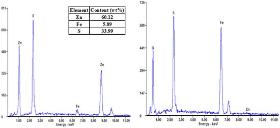 EDS results of micro area A (sphalerite) and B (right) in Figure 2.