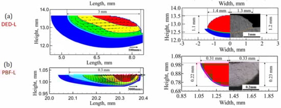Comparison of the melt pool in (a) DED and (b) SLM to learn about the thermal history and cooling rate [].
