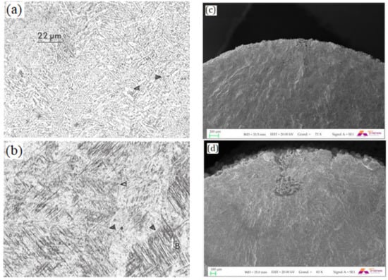 Comparison of the microstructures for (a) EBM and (b) SLM and the surface roughness for (c) SLM and (d) EBM for Ti6Al4V [].