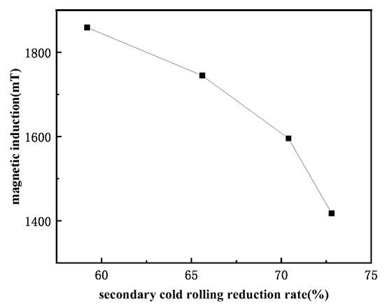 Secondary recrystallization temperature of samples with different secondary cold rolling reduction rates.