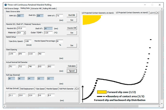 For the convenience of checking the results, the calculated tube-roll contact boundary and metal slip distribution can be visualized by a computer application developed by using a free IDE named Lazarus 2.0.10 (see Figure 7) [18].