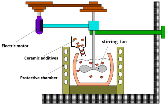 As shown above, most MMC composites are based on pure metal filled with additives. Few studies deal with the segregation effect caused by aluminum alloy; moreover, Al-Si-Mg alloy is the matrix material. Regarding our hypothesis, the Al-Si-Mg alloy is strengthened by ceramic additives [14] and enhances the compressive strength, but the strengthening mechanism varies with the position of the cast in the casting mold. Segregation effects were major factors in the variation in mechanical properties [15], which also reduced the micro-homogeny distribution of alloy elements through the cast. In addition to the molding effect [16], therefore, the novelty, which needs more study, was the effect of stir casting on the segregation of the alloy, as well as the heat treatment during casting, which saves effort and time for progressive sequences and operation. Hence, the present study has three main topics of investigation: (1) the fabrication technique using a special preparation stir-casting process, (2) the effect of mold types and different cooling rates, and (3) the tribological properties of MMC based on Al-Si-Mg/SiC, Al2O3 composites.