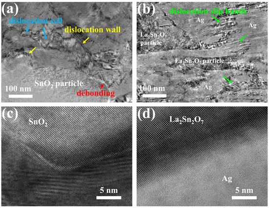 3.2. Microstructures of the Ag-SnO2 and Ag-La2Sn2O7 Composites
