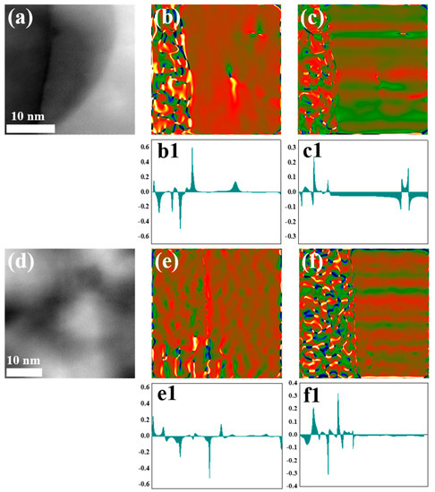 4.3. Geometric Phase Analysis (GPA) around the Interfaces